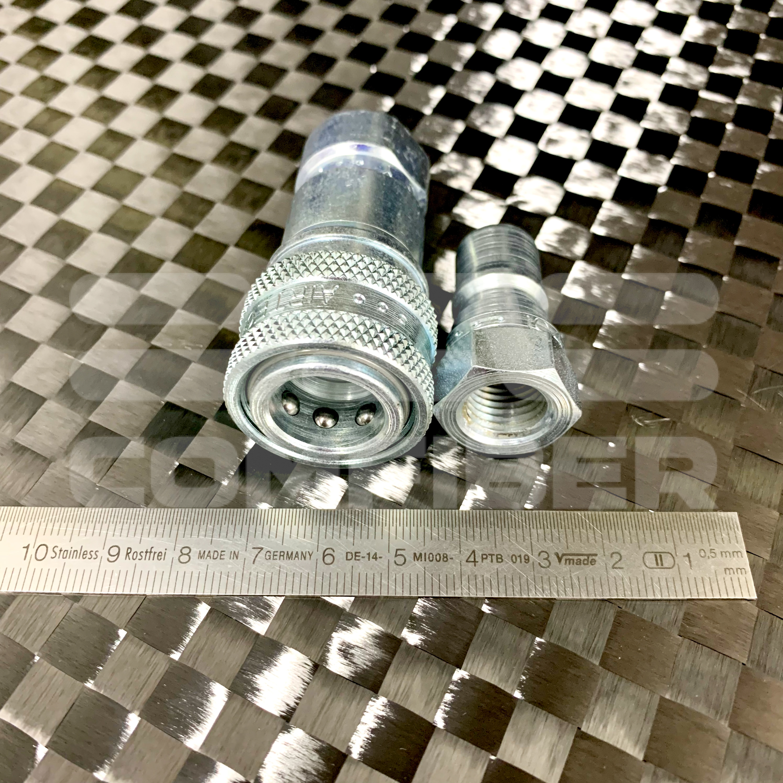 Разъёмы AQD 500TF изготовлены из высокоуглеродистой стали, которая была обработана для предотвращения оксидации. Быстрые разъёмы AQD 500TF имеют внутренние клапаны, после разъединения поток воздуха запирается с каждой стороны. Это означает, что под вакуумной пленкой остается вакуум даже после отключения вакуумных шлангов. Разъемы AQD 500TF быстро подключаются к штуцерам и системам Airtech Vac Valves. AQD 500TF поставляется с внутренними фиттингами, расчитанными на стыковку с автоклавными трубками Airflow. Используйте AQD 500BF с рифлёнными фиттингами для подключения к резиновым трубкам.